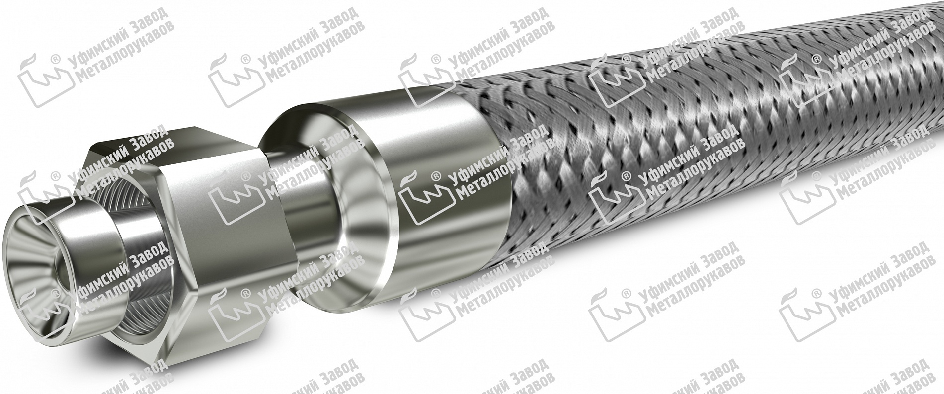 Накидная гайка - используется для присоединения металлорукава к трубопроводу заказчика, который транспортирует среду.